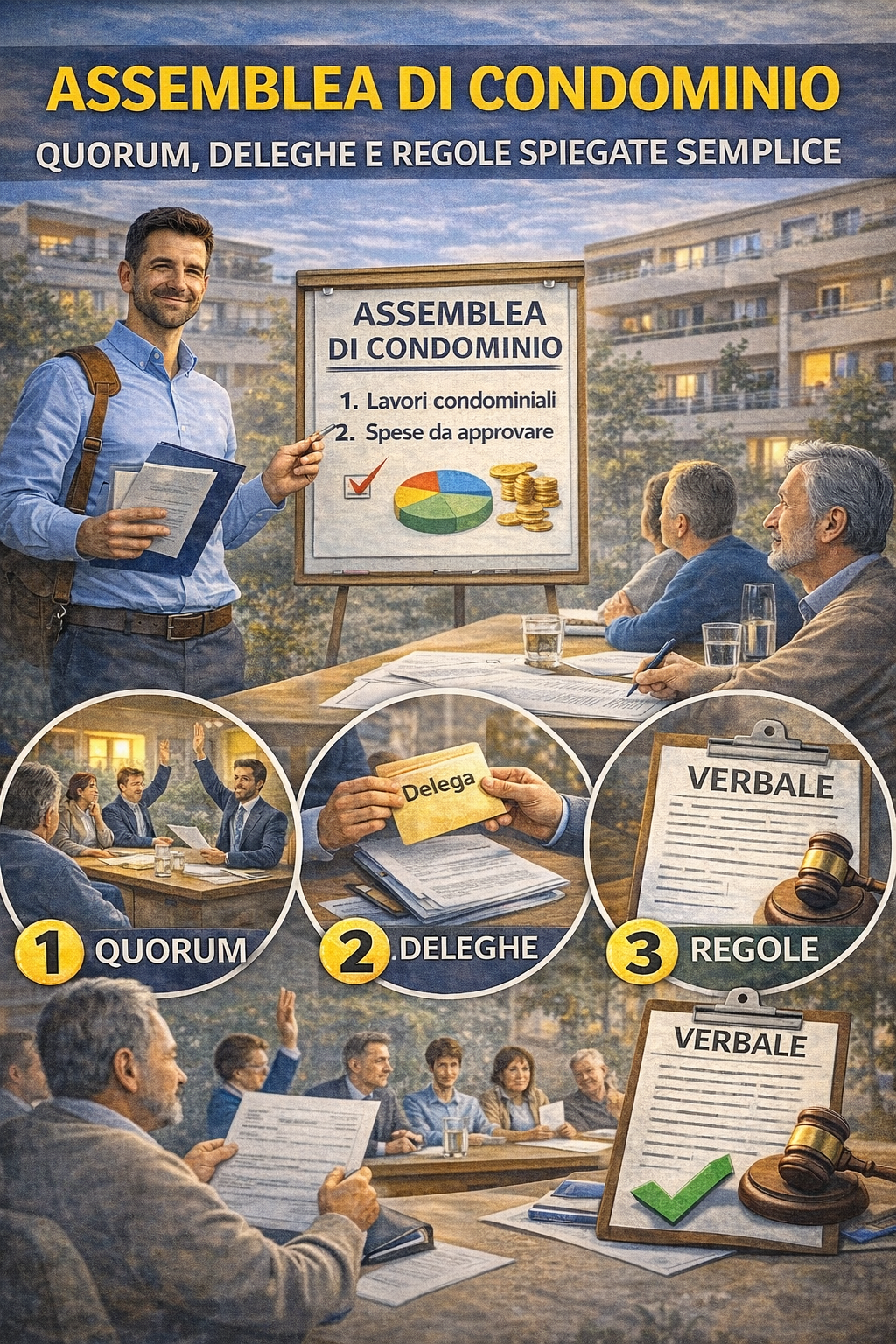 Assemblea di condominio: quorum, deleghe e regole spiegate semplice
